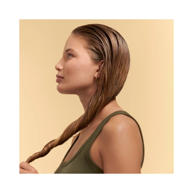 Depositar una pequeña cantidad en el hueco de las manos, emulsionar enérgicamente y aplicar de medios a puntas. Dejar reposar de 1 a 2 minutos para facilitar el desenredado. Una vez por semana, dejar reposar la mascarilla hidratante de 5 a 7 minutos para una hidratación profunda en el corazón del cabello.