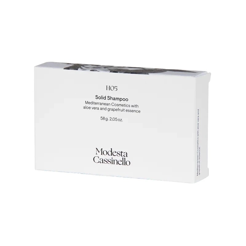 El champú sólido de Modesta Cassinello, combina ingredientes mediterráneos delicados y sencillos, para respetar el cuero cabelludo, cabello, y nuestro planeta.
