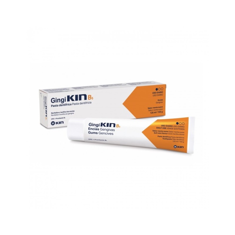 GingiKIN B5 es un dentífrico indicado para el cuidado diario de la boca y las encías. Ayuda a controlar la acumulación de biofilm dental, fortalece y tonifica las encías, previene la caries y refuerza el esmalte dental, siendo ideal para mantener una higiene oral completa y saludable.