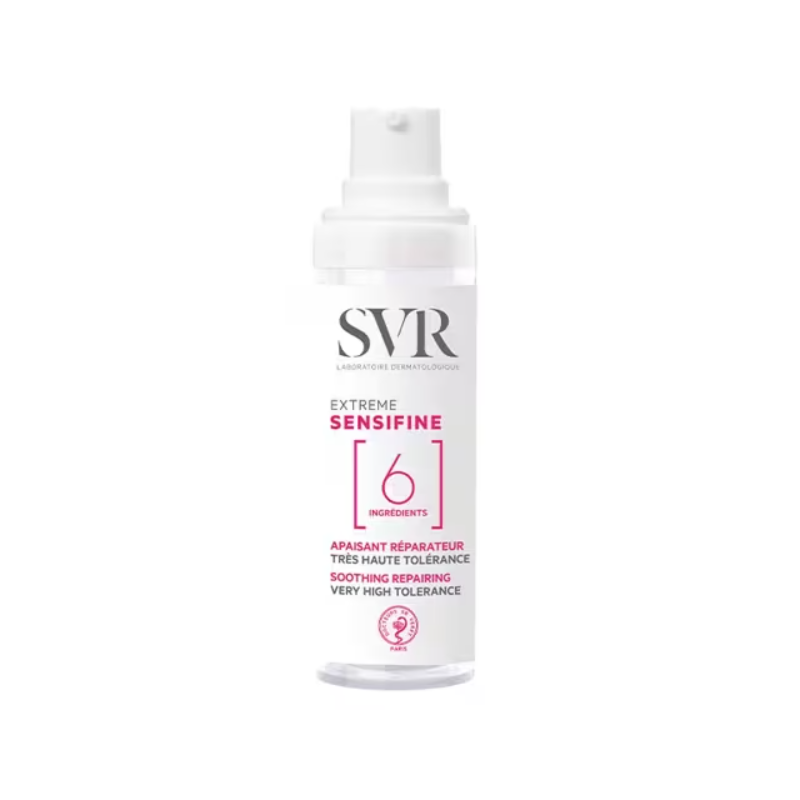 SVR Sensifine Extreme es una crema ultraminimalista para pieles muy sensibles e intolerantes que buscan calma inmediata. Su fórmula con solo 6 ingredientes —destacando el aceite de jojoba y el agua ionizada rica en minerales— repara, hidrata y reduce la reactividad sin perfumes ni irritantes. Ideal para brotes, rojeces y pieles que “no toleran nada”, incluso niños desde 3 años, embarazadas y lactantes.