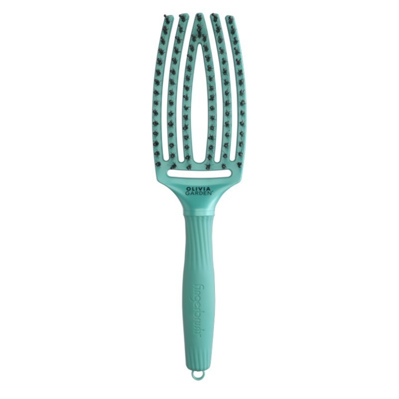 El Olivia Garden Fingerbrush es un cepillo innovador diseñado para desenredar, dar brillo y cuidar el cabello sin dañarlo. Su combinación de cerdas de jabalí y nylon ayuda a distribuir los aceites naturales del cuero cabelludo, aportando hidratación y suavidad, mientras que su diseño ergonómico curvado se adapta perfectamente a la cabeza, proporcionando un masaje estimulante que favorece la circulación sanguínea y el crecimiento capilar.