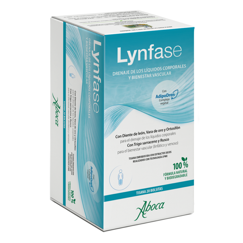Lynfase Tisana es una infusión natural formulada para favorecer el bienestar vascular y el drenaje de líquidos corporales. Su exclusivo complejo AdipoDren combina Trigo sarraceno y Rusco para el soporte linfático y venoso, y Diente de león, Vara de oro y Ortosifón para promover la eliminación de líquidos de manera natural. Una forma agradable y eficaz de cuidar tu organismo día a día.